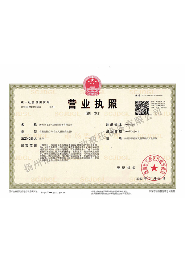 以科技興企、管理求效質量方針,弘揚“求真、務實、創新、爭先”的企業精神。揚州市飛龍氣動液壓設備有限公司